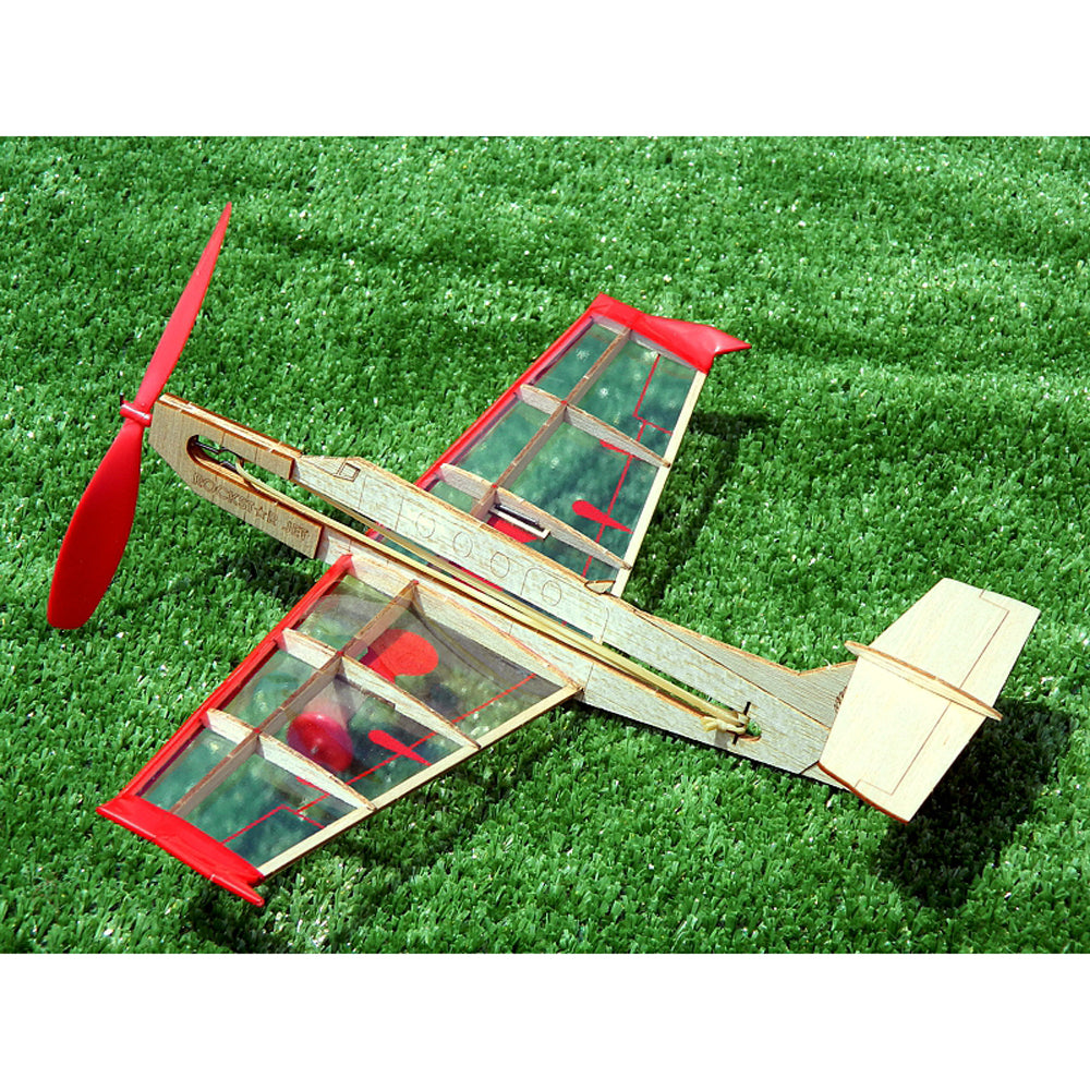 The kit contains LASER CUT balsa parts, plastic propeller & wheels, detailed stick on wing covering and rubber band motors. All you will need to complete the model is glue and wire cutters!