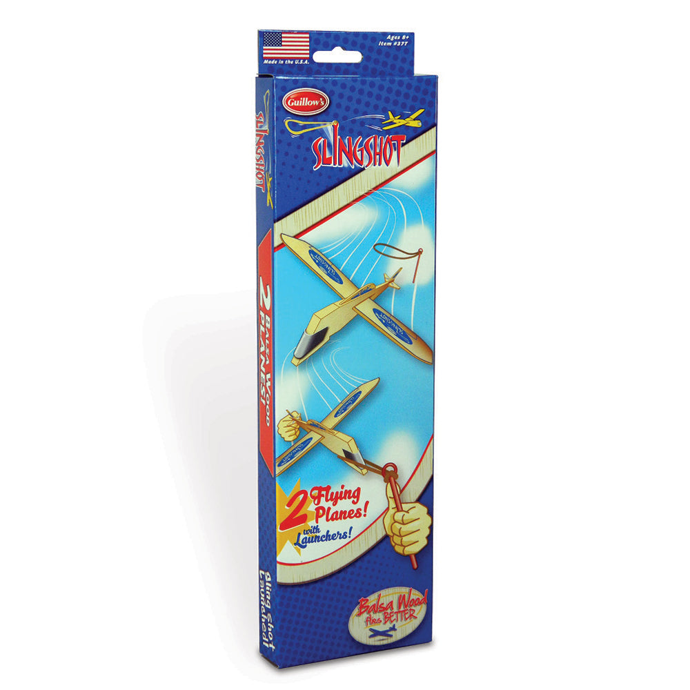 Two high performance rubber sling shot launched gliders in 1 box. These gliders have a 12" wingspan for long flights over 50 feet high!