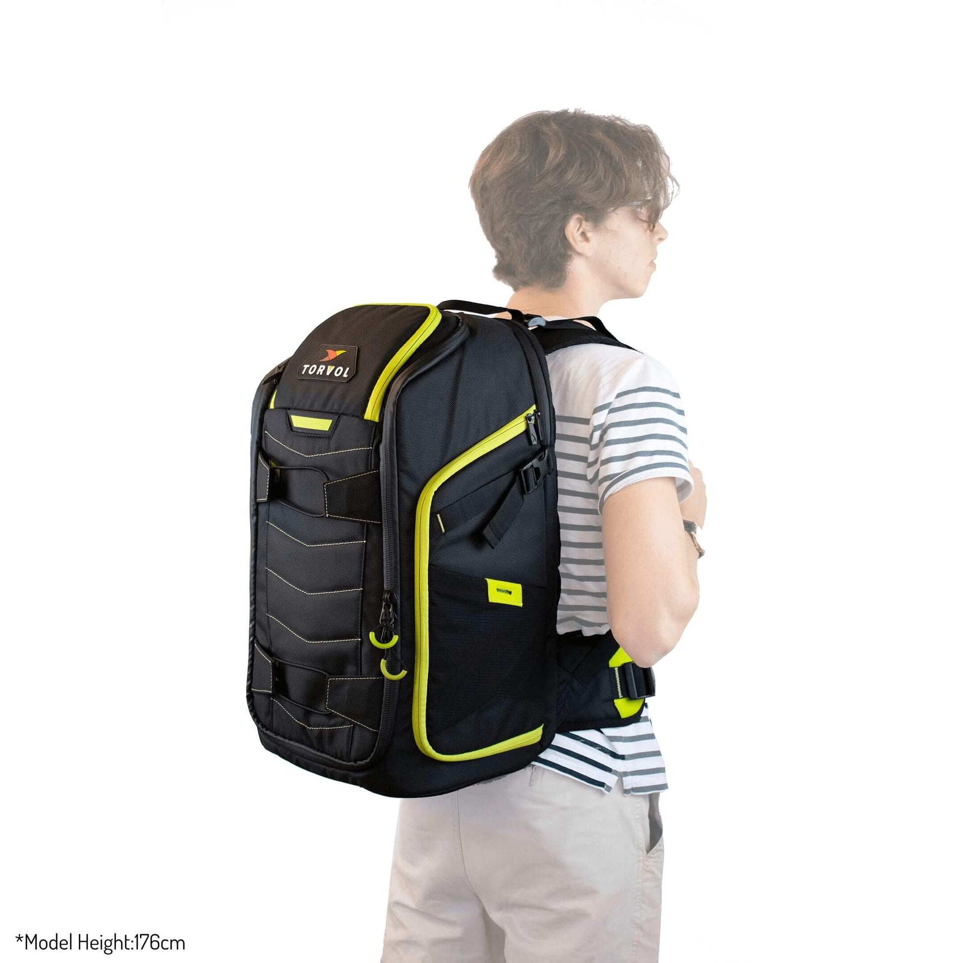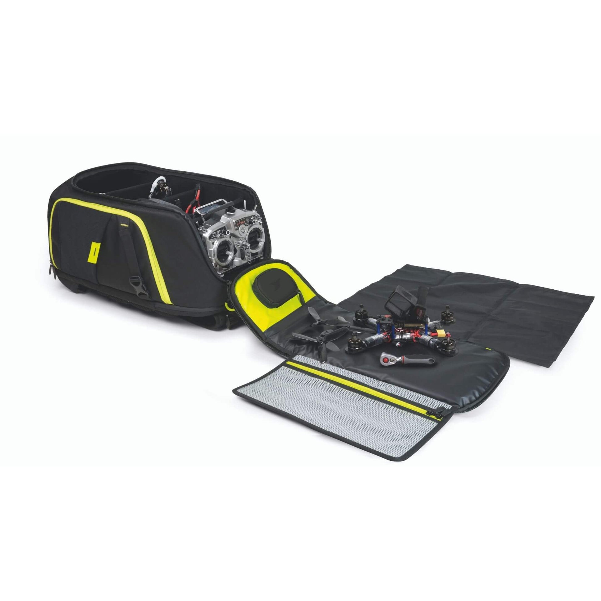 The Torvol Quad PITSTOP Backpack PRO easily carries four-race quadcopters and your FPV gear, such as goggles, transmitters, LiPo’s, tools, etc. It features Torvol’s PITSTOP area. The Torvol smart zipper transforms the backpack into a portable workspace to adjust and modify your quads quickly and effortlessly.