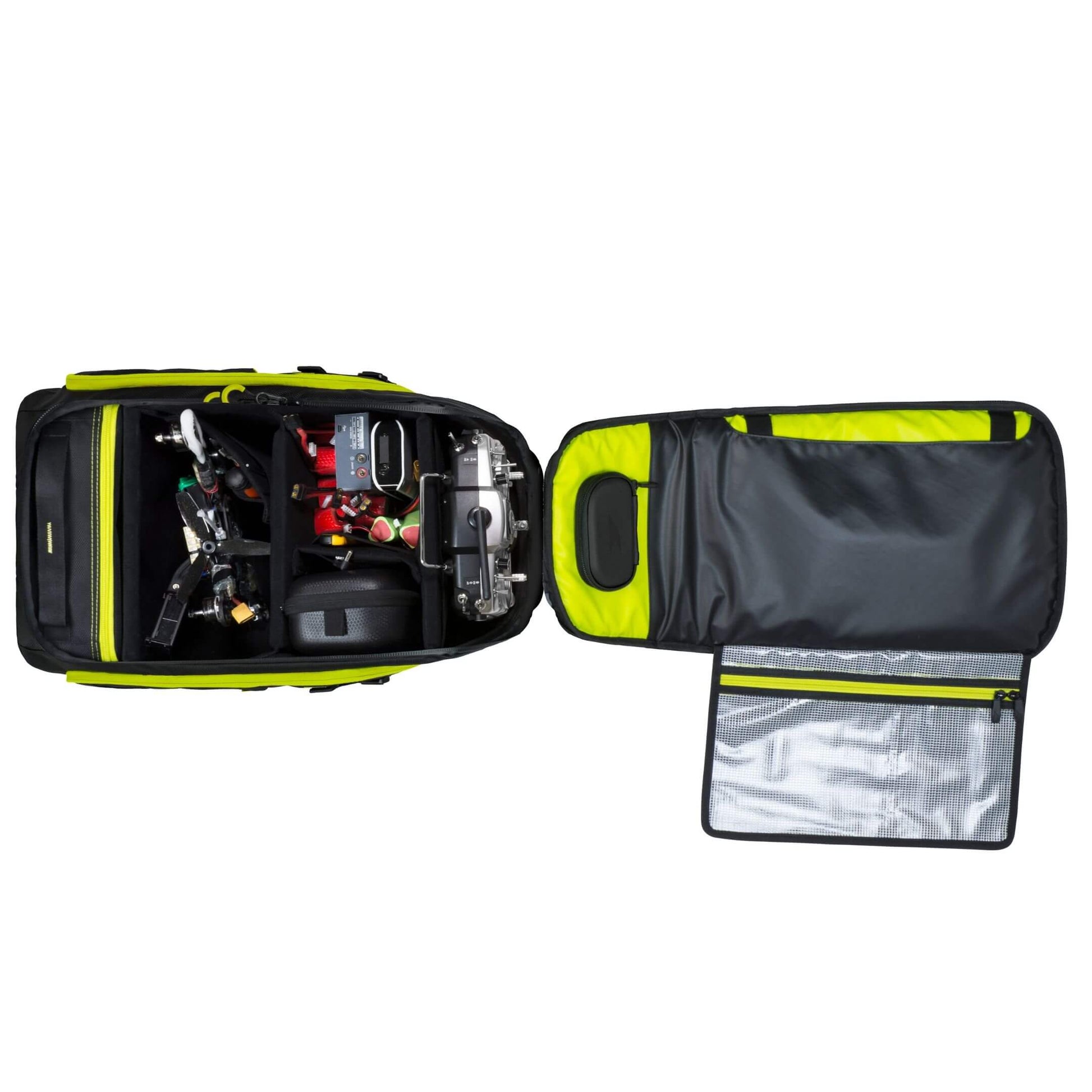 This quadcopter backpack includes multiple organizer pockets that provide ample space for smaller FPV gear and personal belongings. At the same time, larger items like a tripod and a foldable chair can be strapped to the outside.