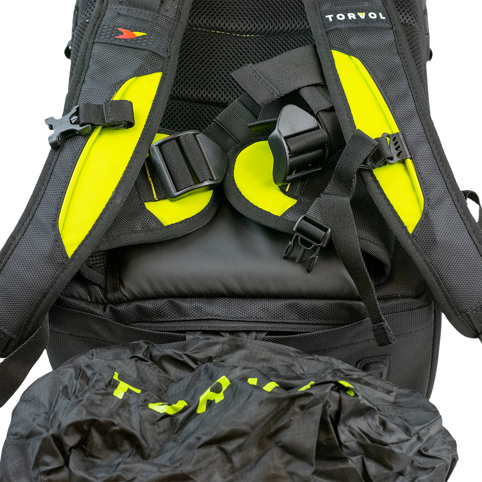 The dedicated laptop pocket on the back holds a 15-inch laptop and a charger. An expandable rain cover, thick back padding, and a hip and sternum strap ensure comfort and convenience while traveling to your race. Torvol’s CLEANSEAT keeps your pants neat in any outdoor space.